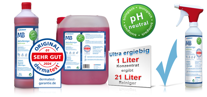 Der dermatologisch getestete und mit «sehr gut» befundene MB-AktivReiniger verhindert üble Gerüche, die durch die Zersetzung von organischen Stoffen entstehen. Ganz besonders eignet er sich zur Unterhaltsreinigung und Geruchsbeseitigung im stark belasteten Sanitärbereich.